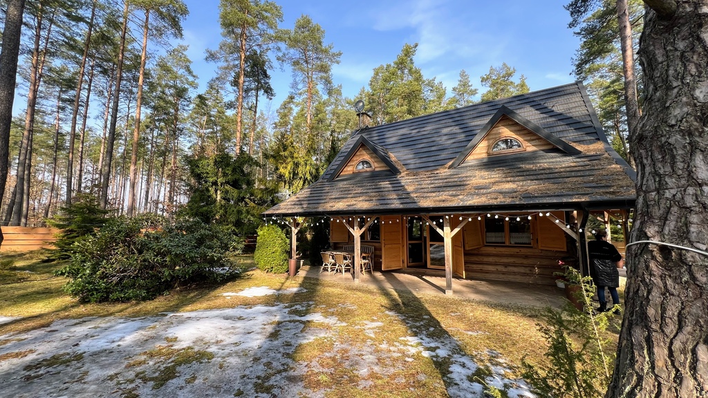 Dom (w Nowej Kaletce) z bala na Mazurach – rekreacyjny, gotowy do zamieszkania, 500 m od plaży nad jeziorem GIM Kameralny azyl w otoczeniu natury ( środek Lasu )