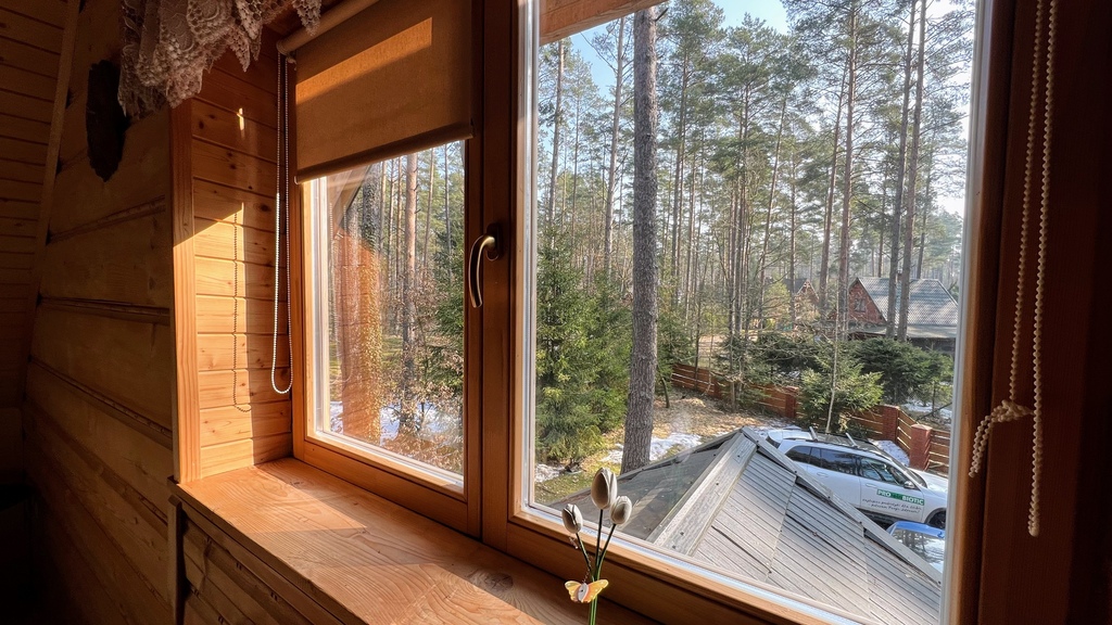 Piętro: - 3 przytulne sypialnie z widokiem na otaczającą zieleń.