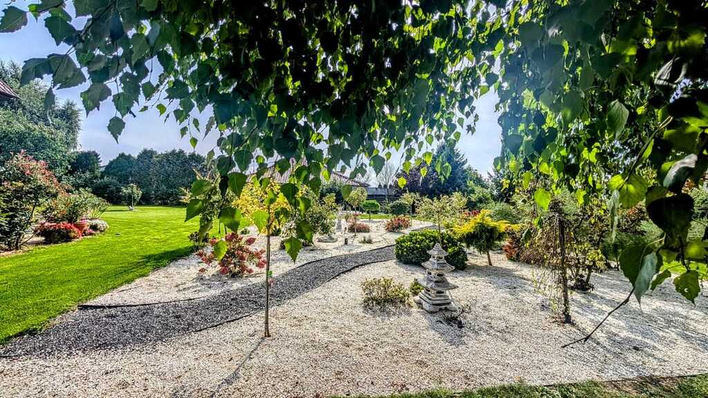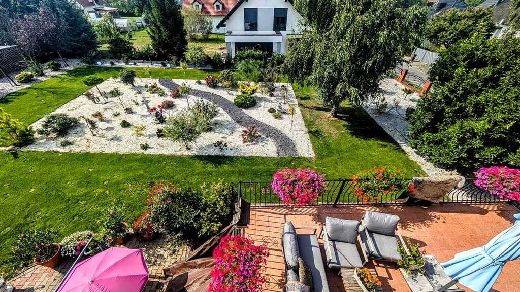 - Teren: ogrodzony, ogród z różnymi nasadzeniami oraz miejscem do relaksu