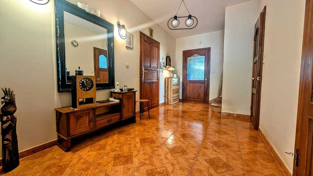 - Ilość pomieszczeń: przestronny salon, 4 sypialnie, kuchnia z jadalnią, 2 łazienki, 2 x WC, 4 pomieszczenia gospodarcze w piwnicy oraz garaż w bryle budynku