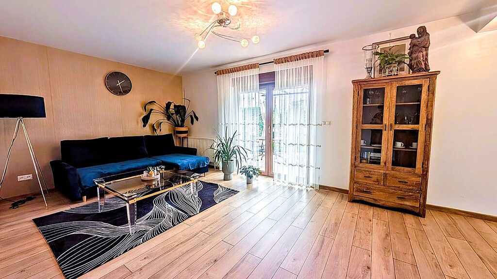 - Funkcjonalny rozkład: duży, jasny salon z wyjściem na taras, przestronne sypialnie oraz wygodna kuchnia