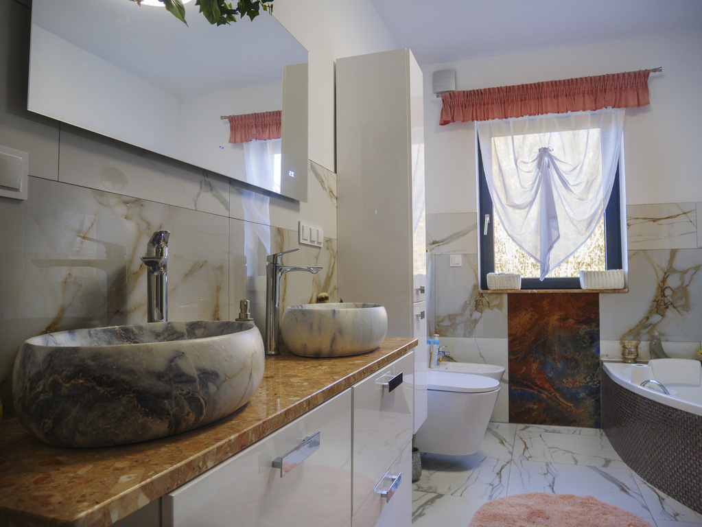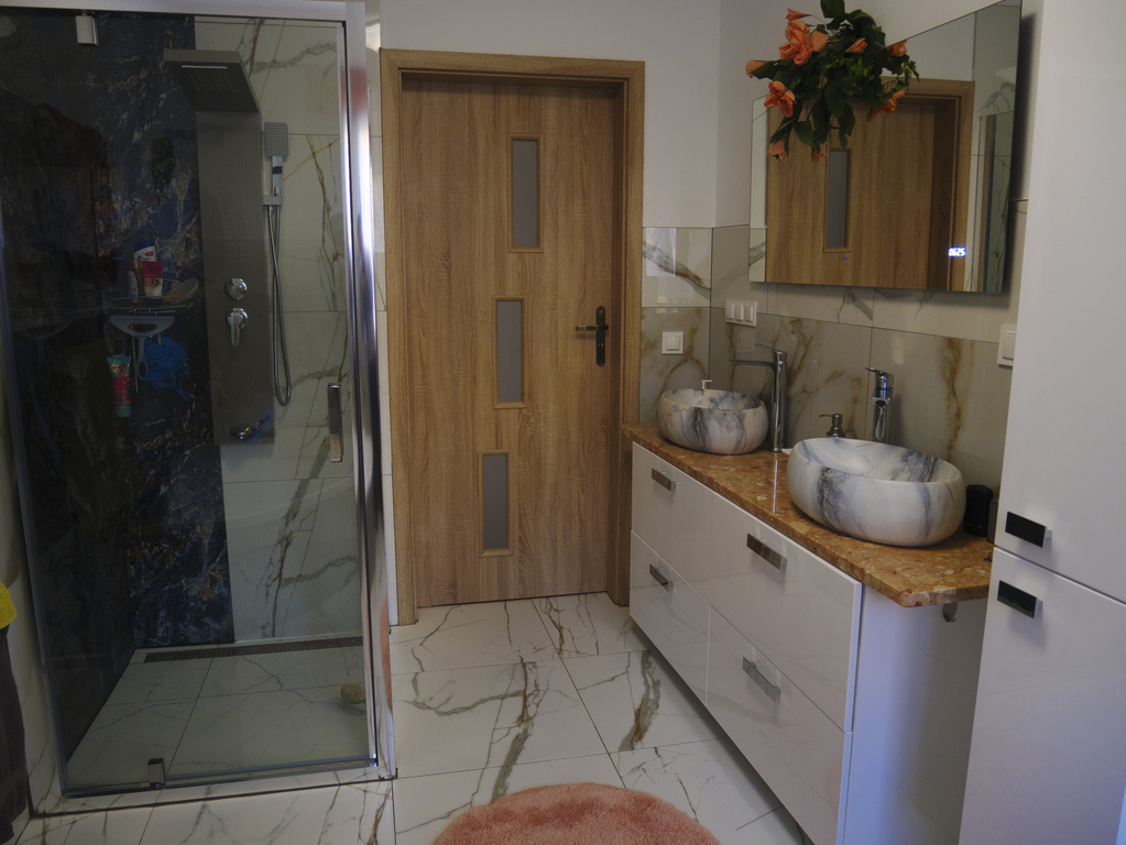 - łazienka stylowo wykończona z dużym prysznicem, wanną i toaletą