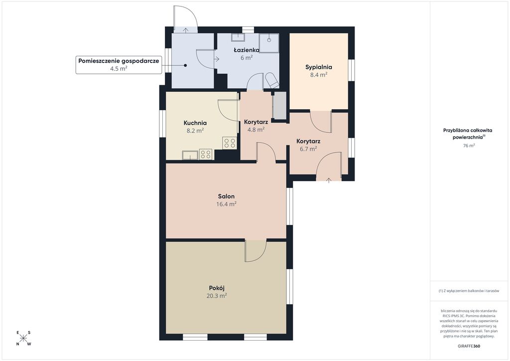 4,5 m². Układ zapewnia wygodne użytkowanie i możliwość adaptacji.