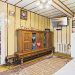 zabudowę w stylu klasycznym oraz kuchnię kaflową, co podkreśla charakter domu. Łazienka wykończona w