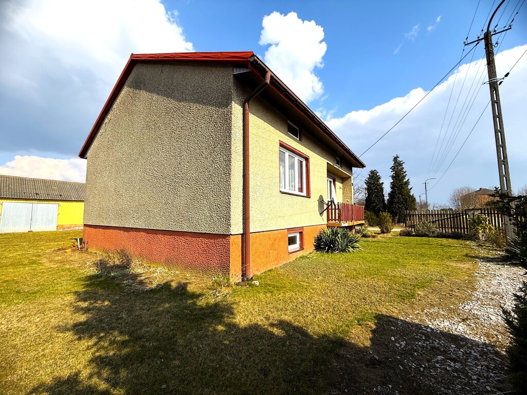 Dom parterowy z poddaszem użytkowym, w całości podpiwniczony, o powierzchni całkowitej ok. 102,49 m² oraz użytkowej 94,44 m². Budynek wybudowany w latach 80., z nadbudową wykonaną w 2020 roku.