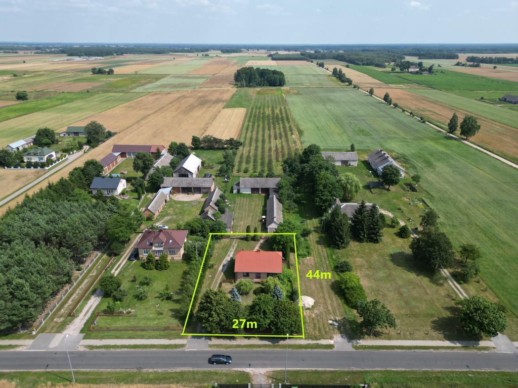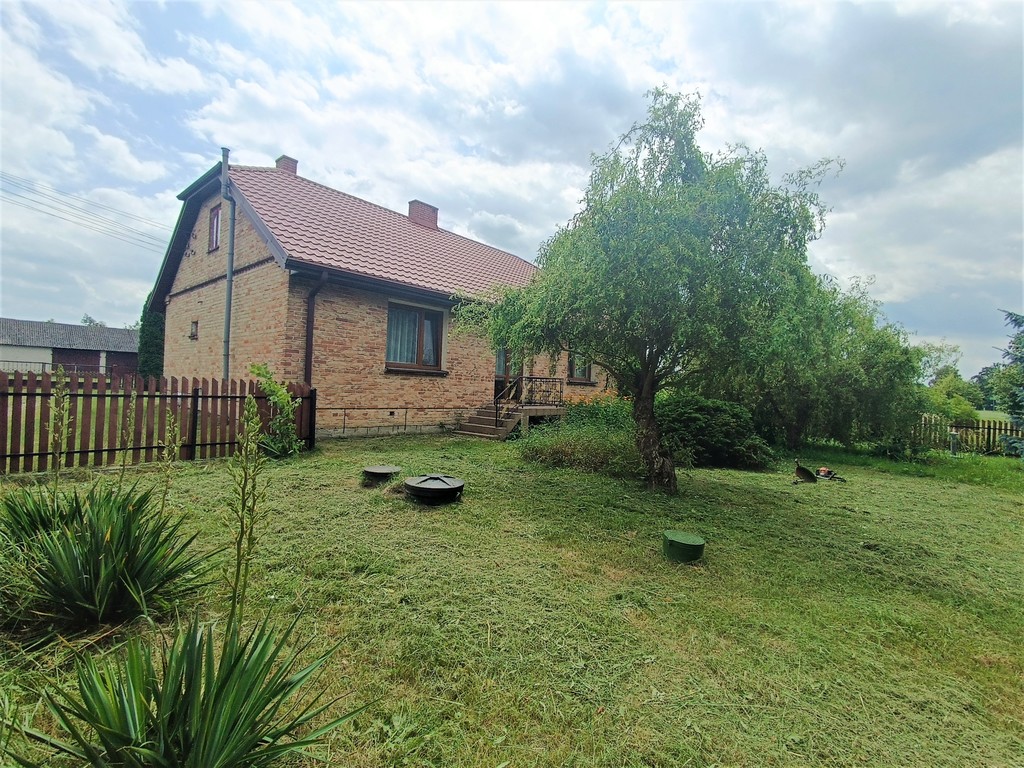 ok 1200 m2 zabudowana domem o pow. 120 m2Teren zagospodarowany, częściowo ogrodzony.