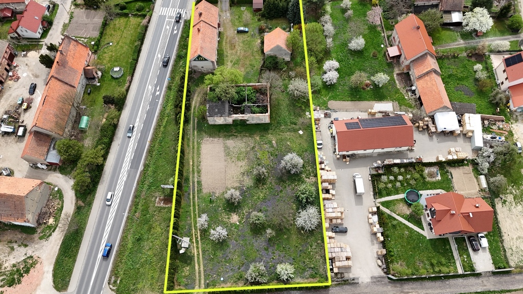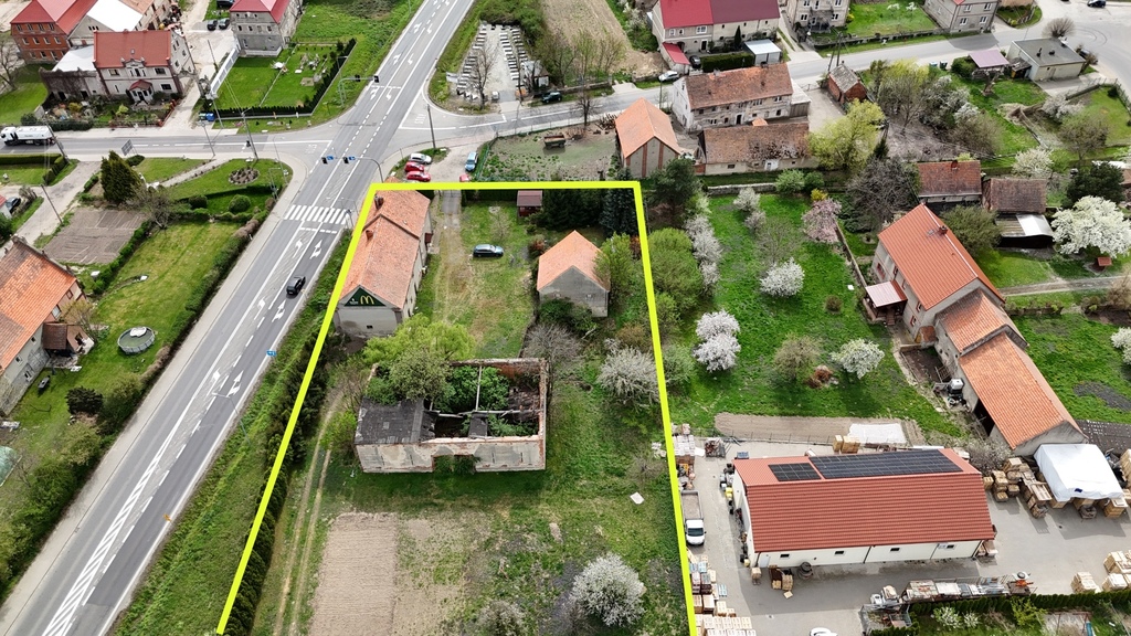 - Zabudowa: budynek mieszkalny jednorodzinny oraz trzy budynki gospodarcze