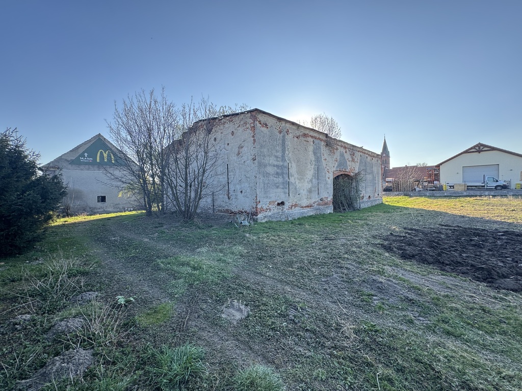 2. Budynek wolnostojący, pow. 277 m², murowany, przedwojenny, dach zawalony, do wyburzenia, stan zły.
