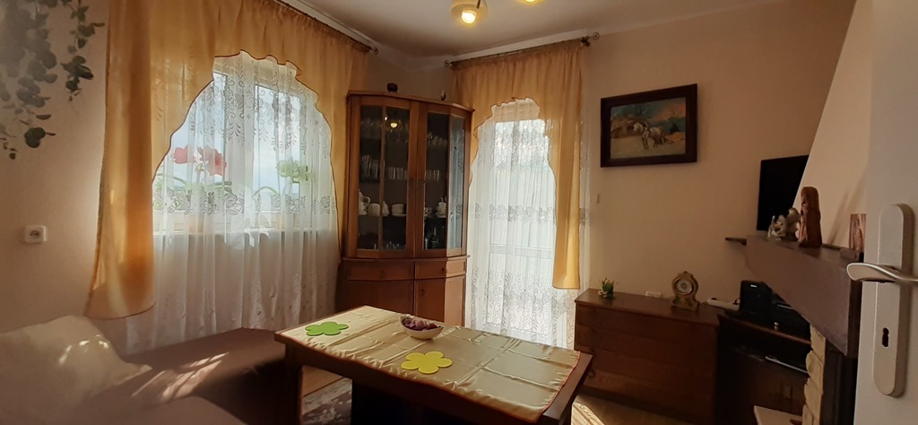 Na parterze domu znajduje się salon z kominkiem i wyjściem na taras, sypialnia, oddzielna kuchnia, garderoba, kotłownia, łazienka razem z wc.