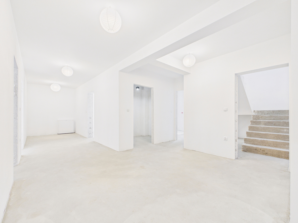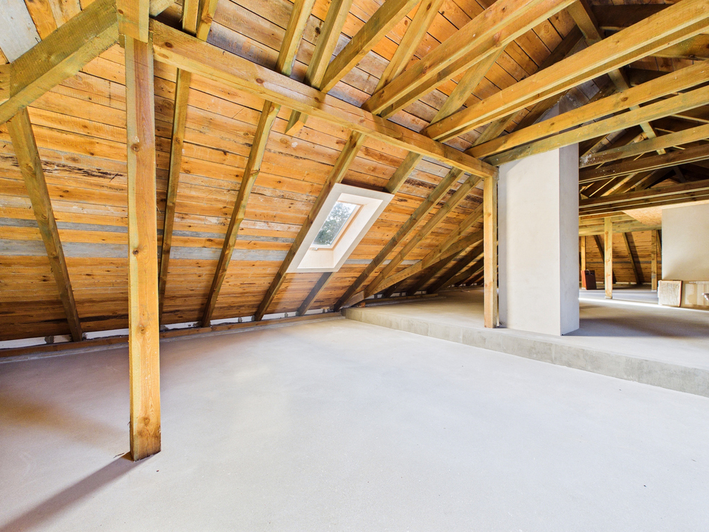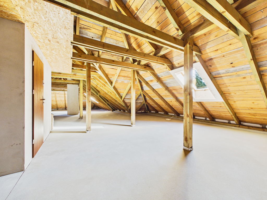 duże poddasze użytkowe, do którego prowadzą wylane schody.