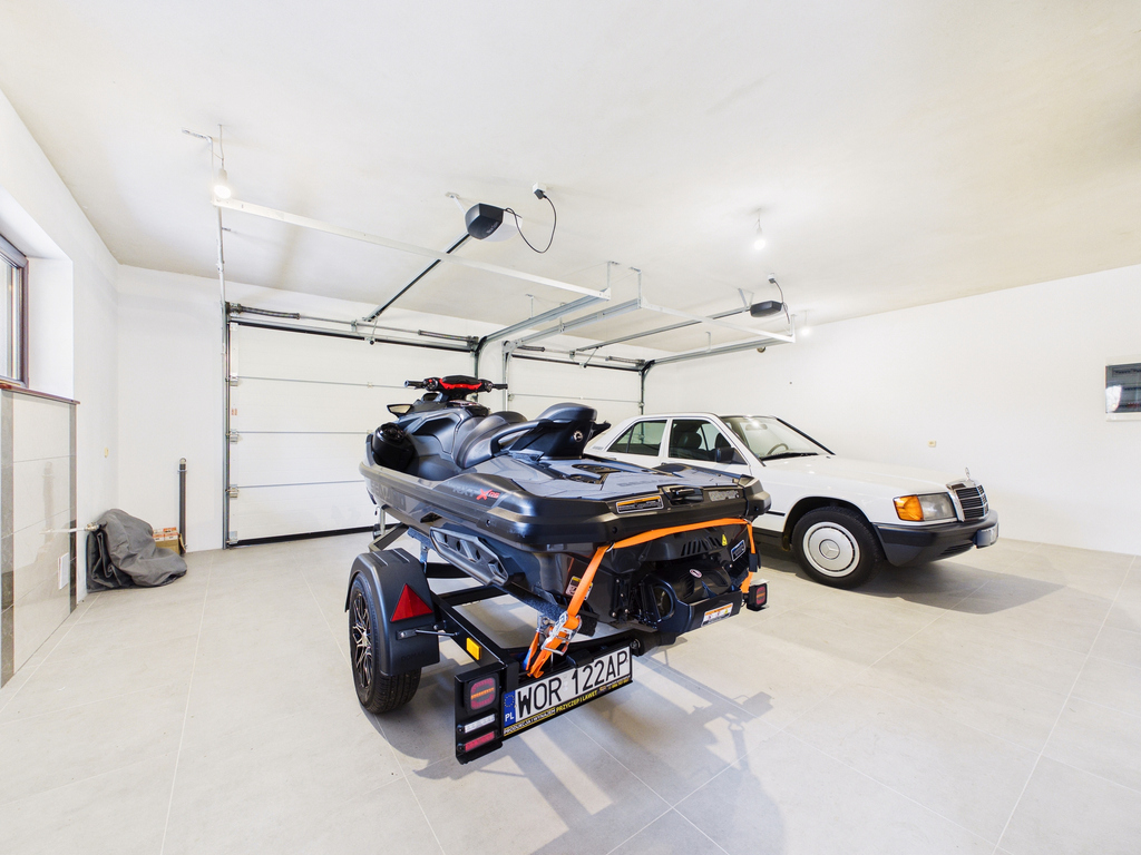 garaż dwustanowiskowy w bryle budynku, dzięki czemu samochody są zawsze pod dachem.