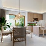 Kuchnia i jadalnia: Nowoczesna kuchnia z wysokim sufitem, co potęguje wrażenie przestronności. Jadalnia otwarta na salon.