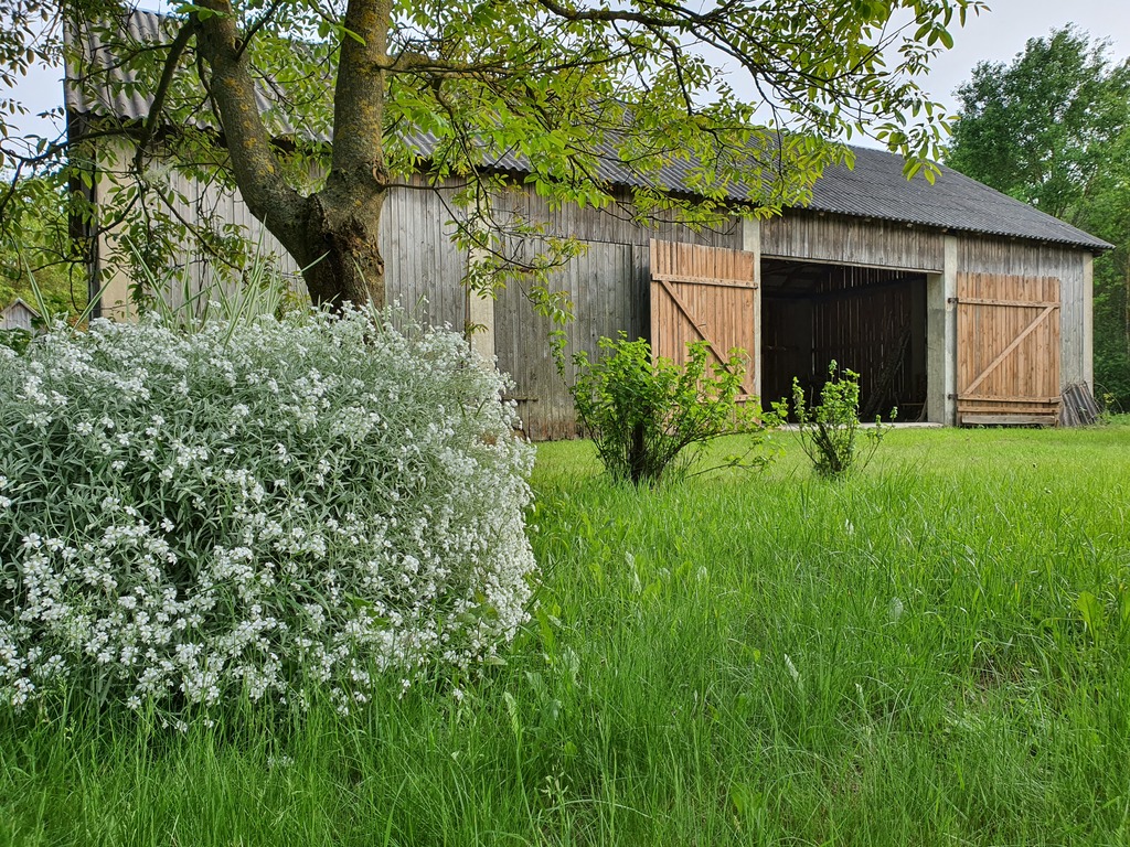 Za stodołą niewielka polana a dalej do końca działki las brzozowy z wyciętą przez środek aleją. Działka jest długa, pełna zieleni, o powierzchni 0,9843 ha w tym ok. 0,30 ha podwórko.