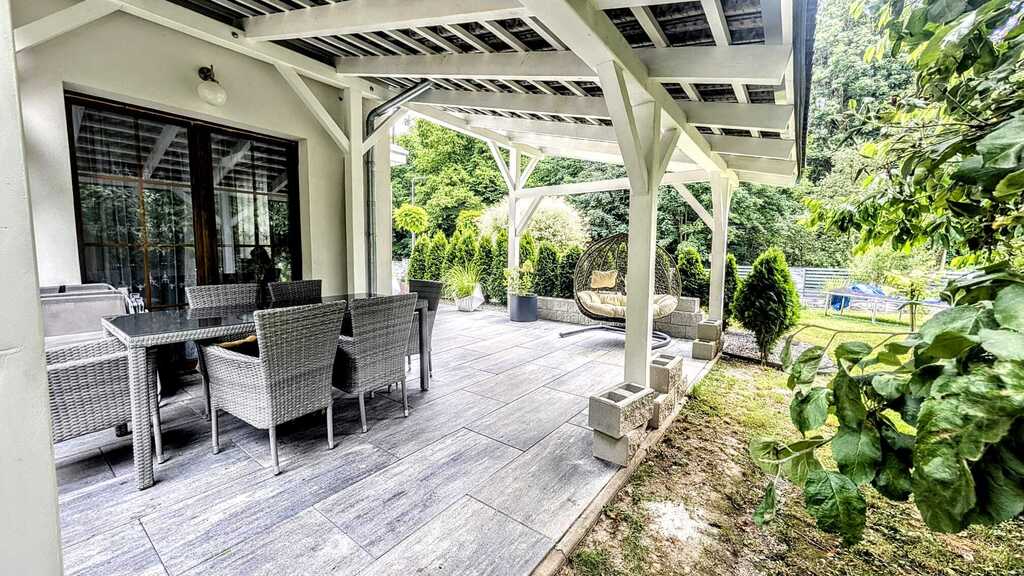 - Piękne widoki: dom otoczony zielenią, w pobliżu lasy, idealne miejsce do spacerów i aktywnego wypoczynku