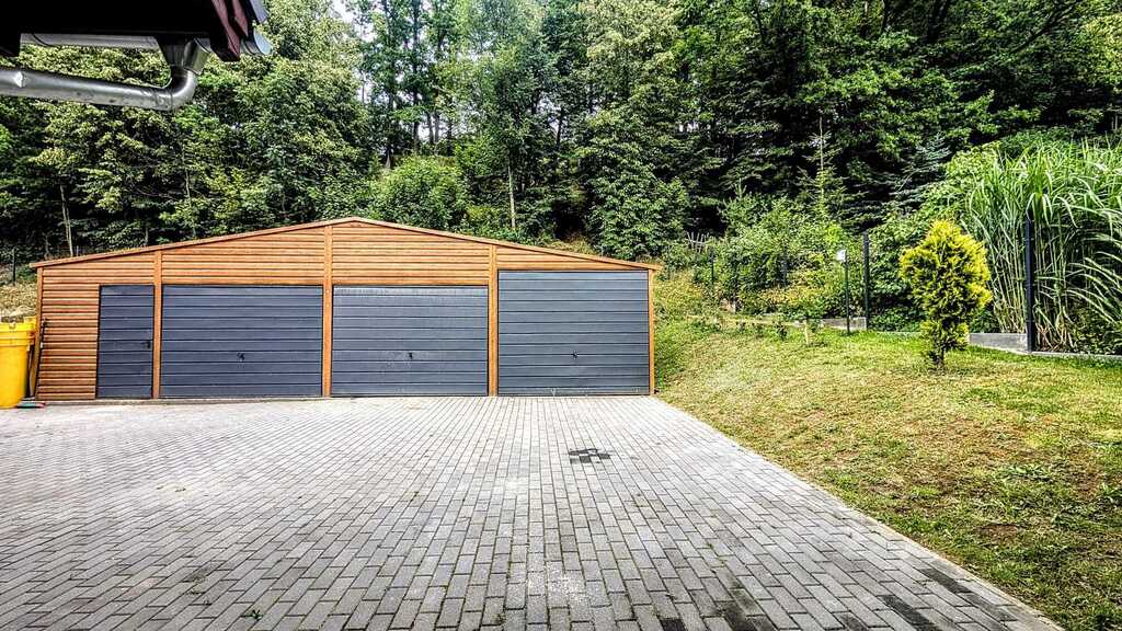 - Garaż: w bryle budynku oraz wolnostojący z miejscem na 4 samochody oraz przestrzenią na narzędzia i sprzęt ogrodowy