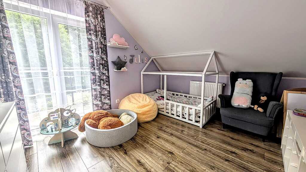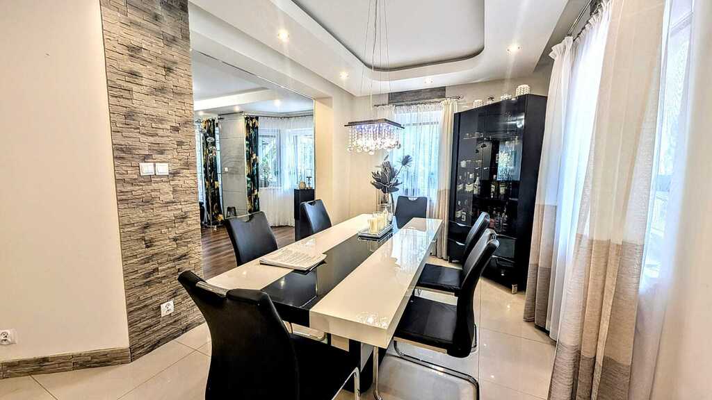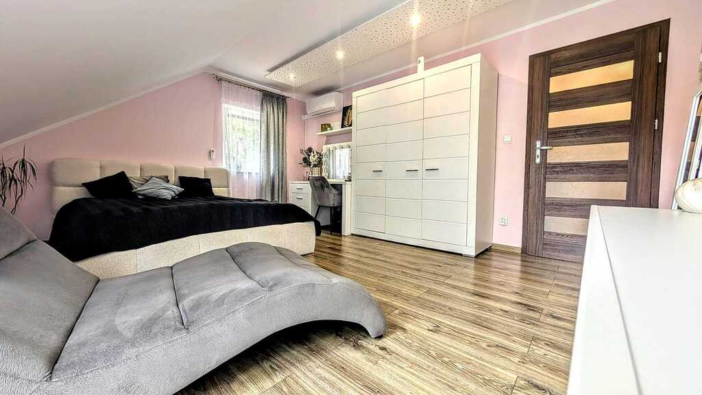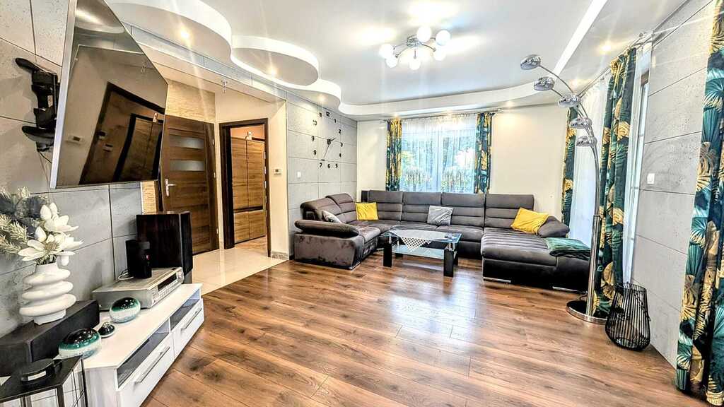 - Ilość pomieszczeń: przestronny salon, 4 sypialnie, kuchnia z jadalnią, 2 łazienki z WC