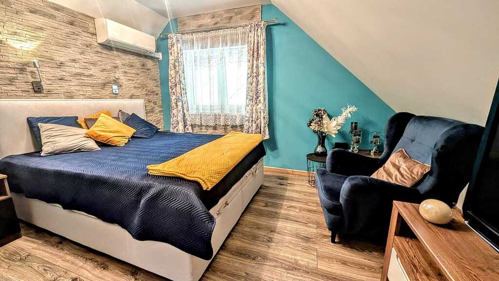 - W każdym pokoju na piętrze została zamontowana klimatyzacja