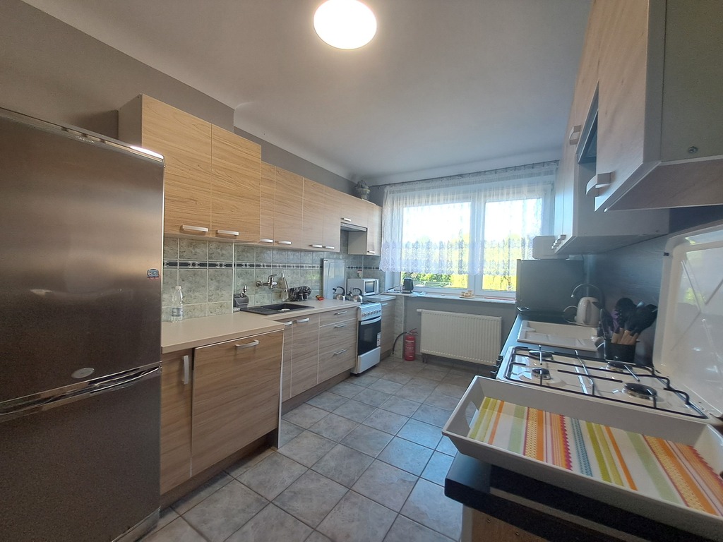 Wspólna kuchnia kompletnie wyposażona oraz łazienka z pralką.