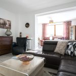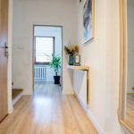 Aktualnie podzielony fizycznie na dwa mieszkania z klatką schodową i osobnymi wejściami.