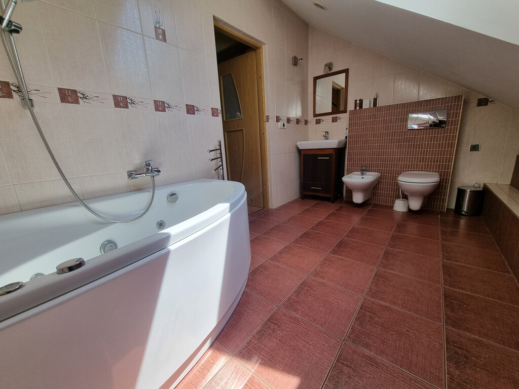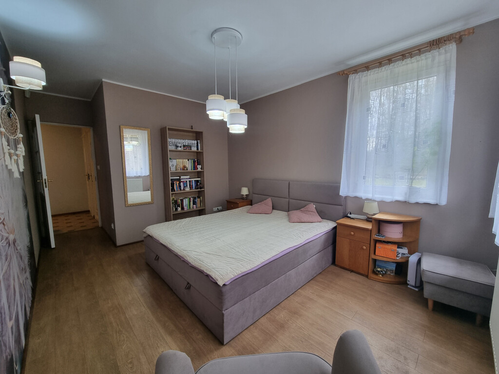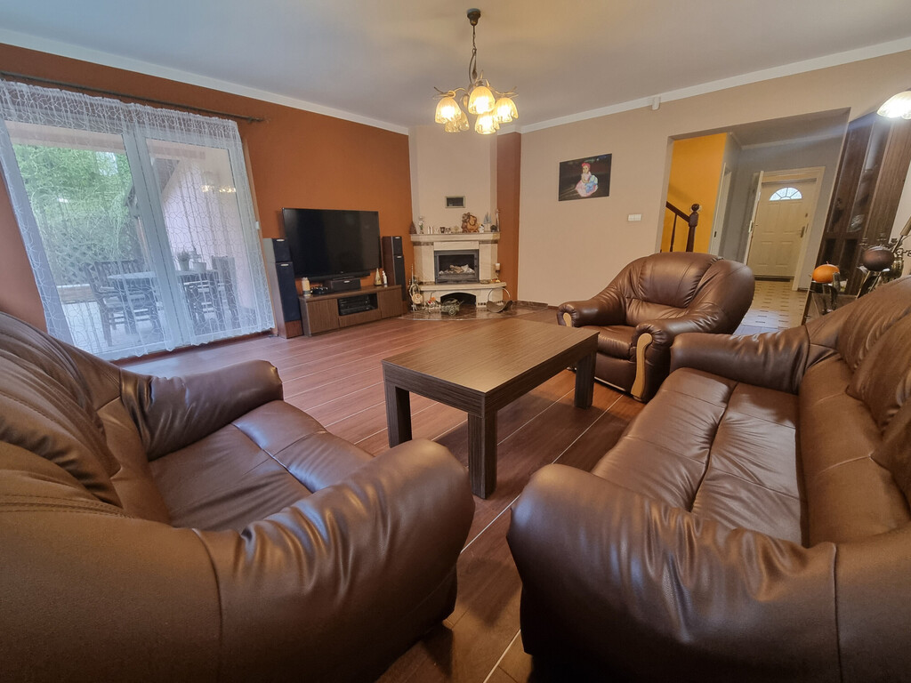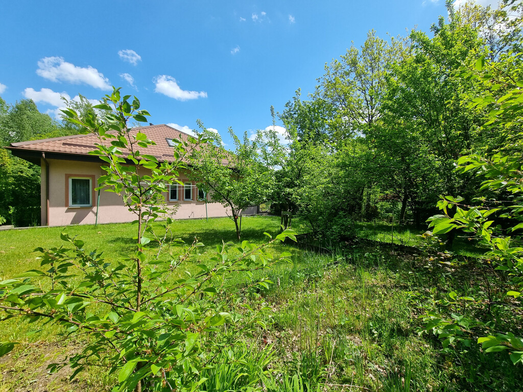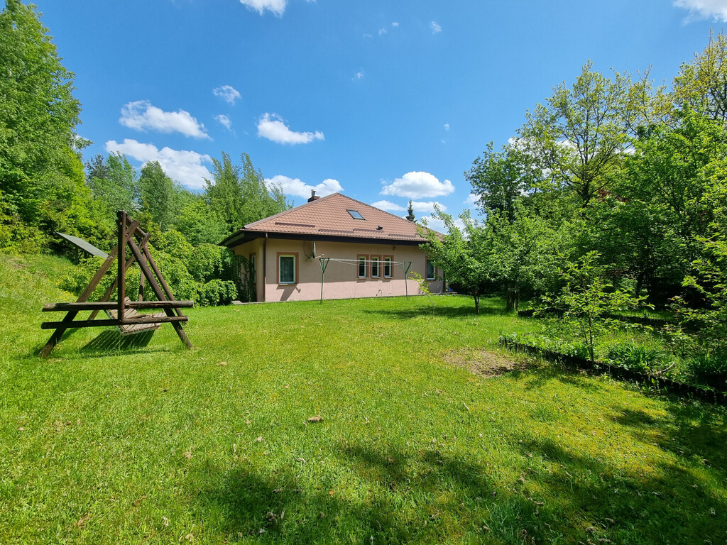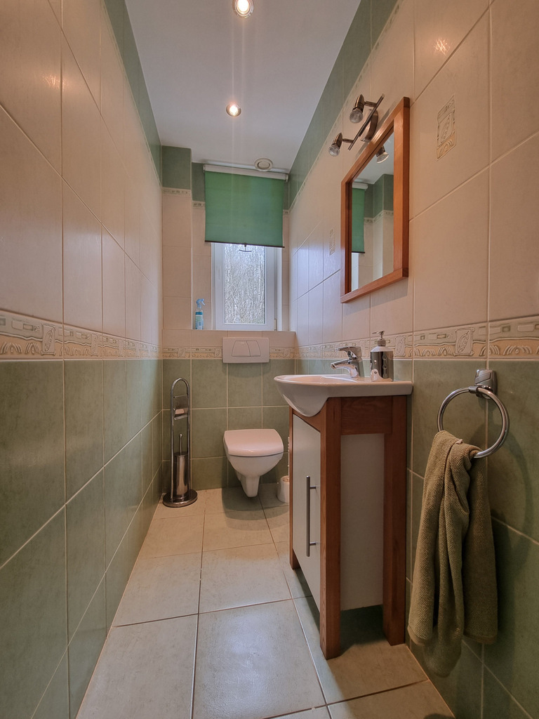Na poziomie parteru znajduje się również kotłownia z piecem na pelet (piec jest z 2020 roku); spiżarnia; spory GARAŻ (20,62 m2, siła) z kanałem i niewielkie pomieszczenie warsztatu, a także wiata o konstrukcji drewnianej na jedno auto.