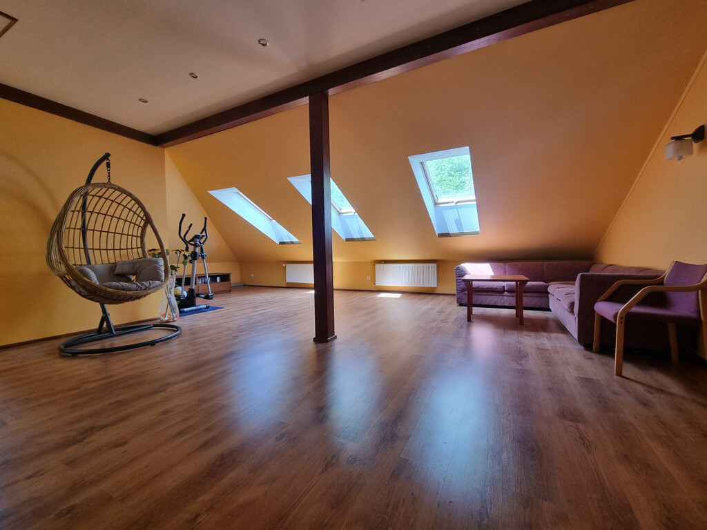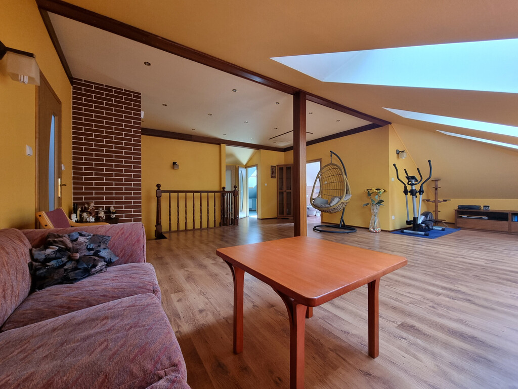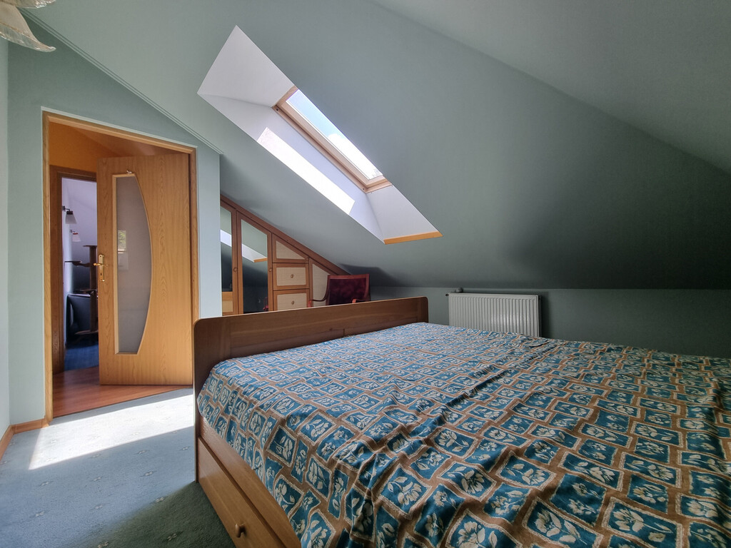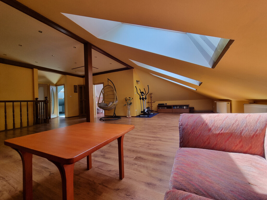 Obecnie na piętrze są dwa POKOJE; ŁAZIENKA z wc (wanna narożna); GARDEROBA i duża, otwarta przestrzeń, którą można wykorzystać w dowolny sposób.