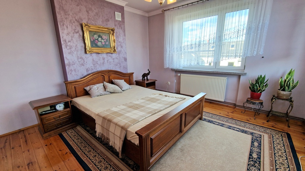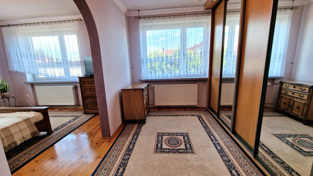 PIĘTRO I:- Duża sypialnia z pojemną szafą w zabudowie pełniącą funkcję garderoby