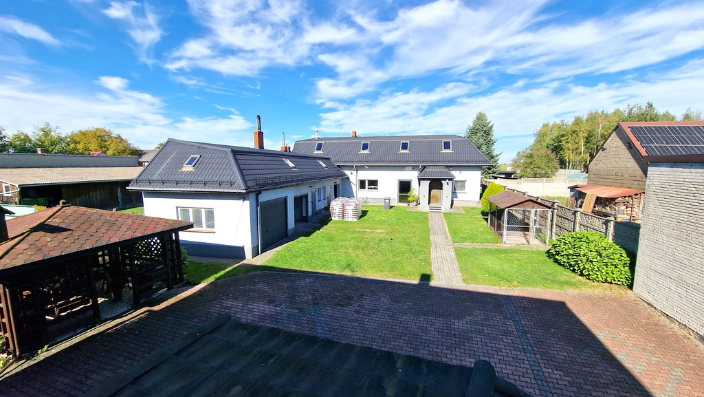 Dom stanowi idealną przestrzeń dla rodziny. Dom dwukondygnacyjny usytuowany na działce 1773m² częściowo wyłożonej kostką brukową.