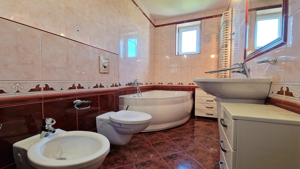 Wybudowany metodą tradycyjną z pustaka ceramicznego, okna PCV, ocieplony i otynkowany, zamontowana klimatyzacja.
