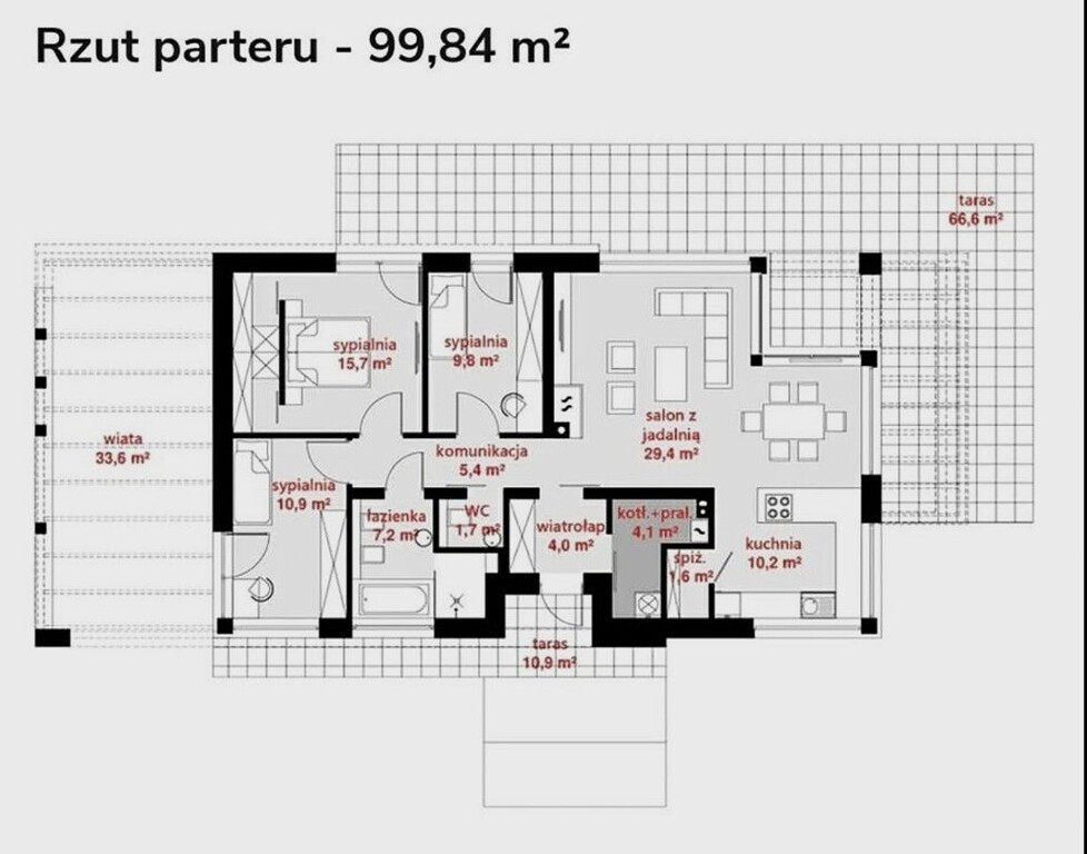 • przestronny salon z jadalnią (29,4 m2)
