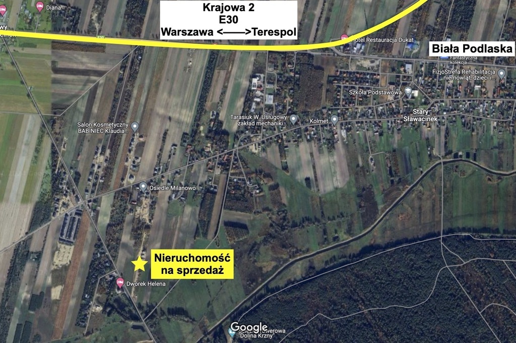 Inwestycja położona w pobliżu Dworku Helena, w sąsiedztwie doliny Krzny, wzdłuż której biegnie ścieżka rowerowa.
