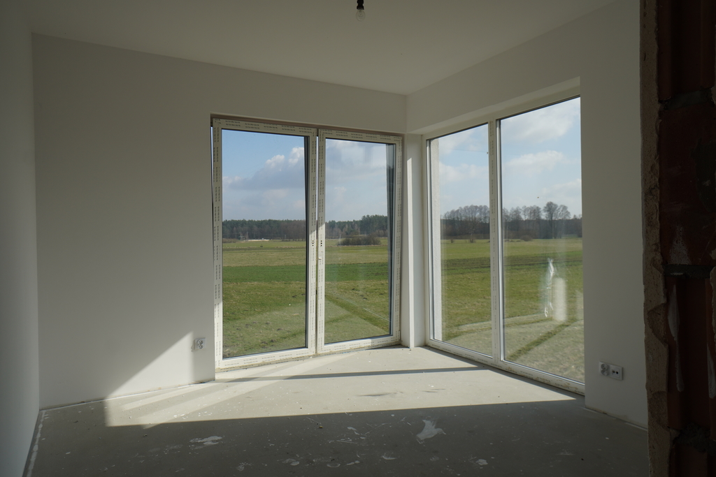 * W salonie 2 x podwójne otwierane drzwi tarasowe bezsłupkowe.
