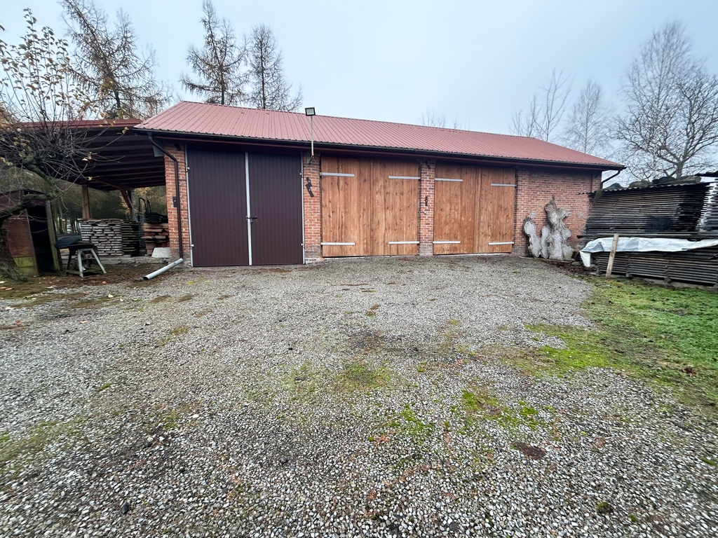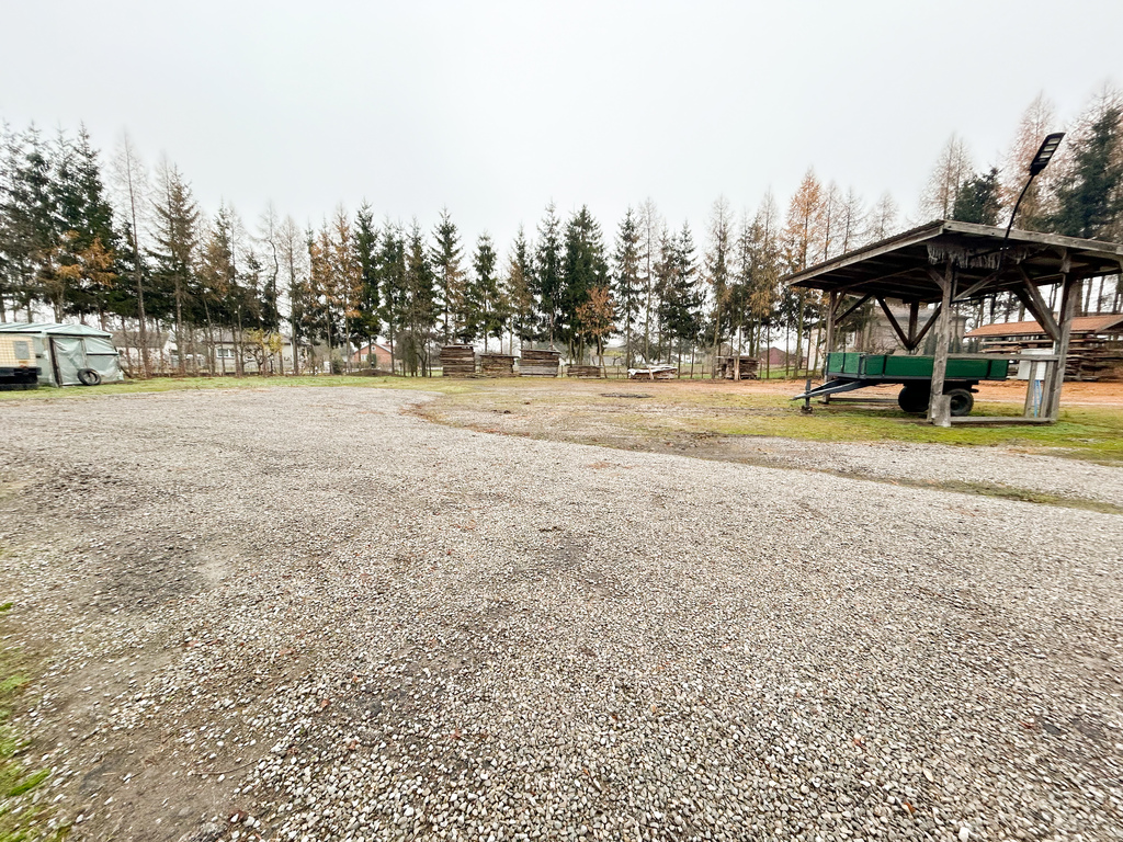 • Zaplecze gospodarcze: Dwa solidne, murowane budynki o dużym metrażu – idealne pod warsztat, magazyn lub kontynuację tradycji tartaku.