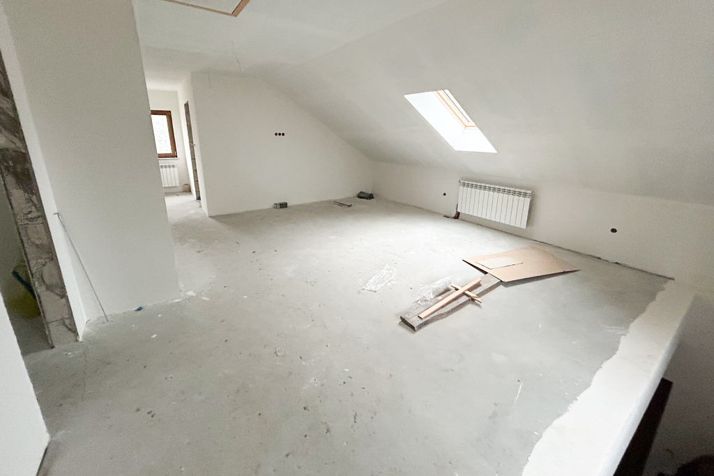 • Poddasze: Otwarta przestrzeń typu antresola (idealna na bibliotekę lub miejsce wypoczynku), 2 sypialnie oraz druga łazienka.