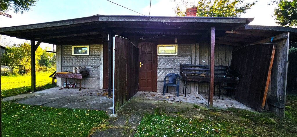 budynek gospodarczy o powierzchni zabudowy ok. 52 m², wykonany z płyt betonowych, z dachem pokrytym blachą. Może on pełnić funkcję garażu, warsztatu lub przestrzeni magazynowej.