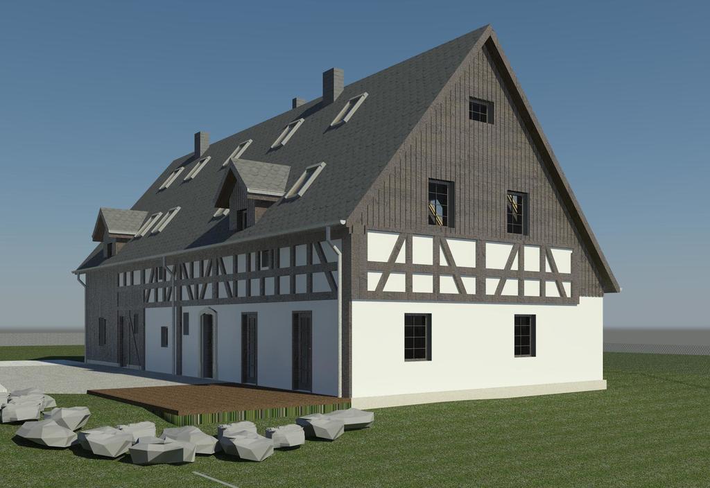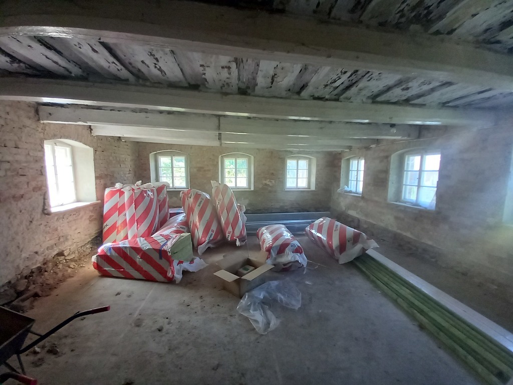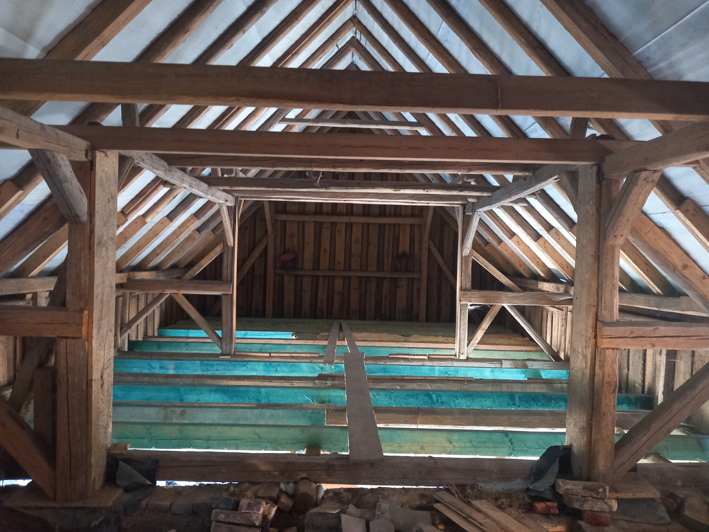 Z zewnątrz ściany są pokryte deskami, ta część jest ocieplona, z nowymi oknami oraz drzwiami. Ta częśc stała się nowoczesną stodołą i powstała praktycznie od nowa.