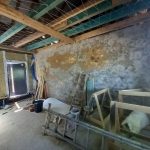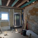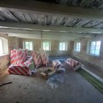 W drewnianej części domu wykonano drenaż i przygotowano dom do wewnętrznego wykończenia.