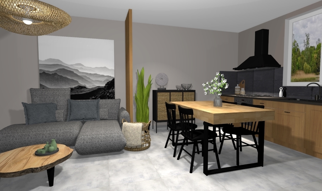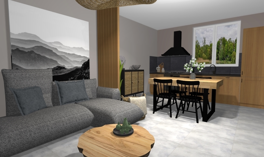 Projekt przewiduje mieszkanie ca 50m2 z sypialnią, salonem z aneksem oraz łazienką. Z salonu wyjście na taras.