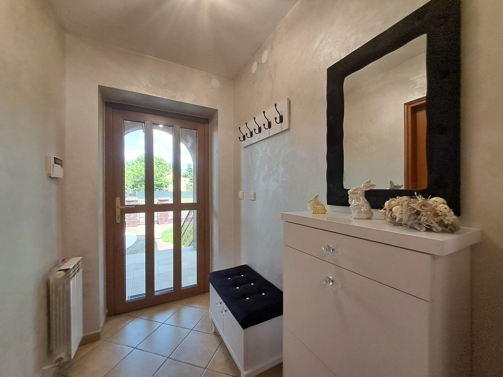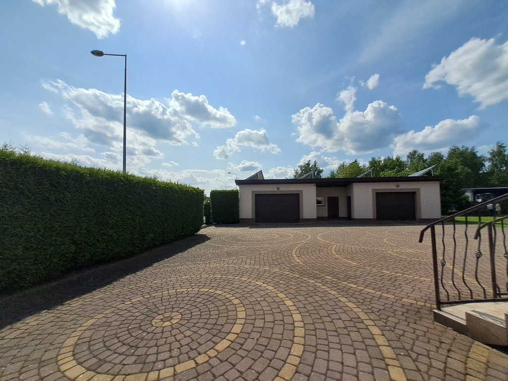 Strychu.Budynek gospodarczy z dwoma garażami na 4 pojazdy i altana ogrodowaDziałka o kształcie zbliżonym do prostokąta o powierzchni ok 1723m2.Dom zbudowany z pustaka , ocieplony styropianem 8cm, dach pokryty blachodachówką, ocieplony wełną mineralną 16cm.Orynnowanie PCV, okna PCV białe -szyby zespolone k=1,0.