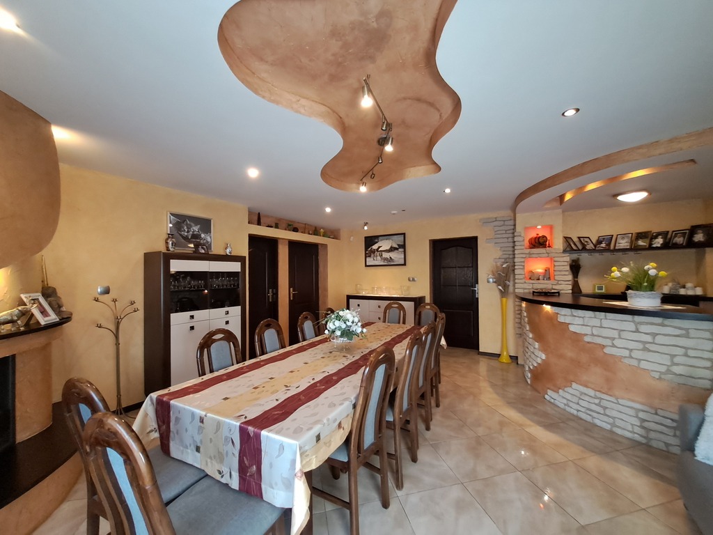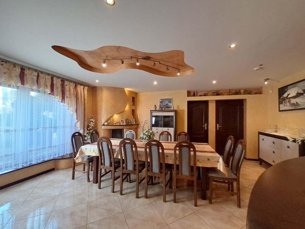 Dom mieszkalny o powierzchni użytkowej ok 280m2 który składa się z;Niskiego parteru na którym znajduje się przestronny salon z jadalnią, kuchnia, WC , korytarz ,zejście do piwnicy i wyjście boczne na ogród.