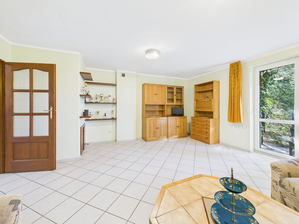Położony przy głównej ulicy, ale osłonięty bujną zielenią i drzewami, zapewnia prywatność oraz przyjemny, leśny klimat.