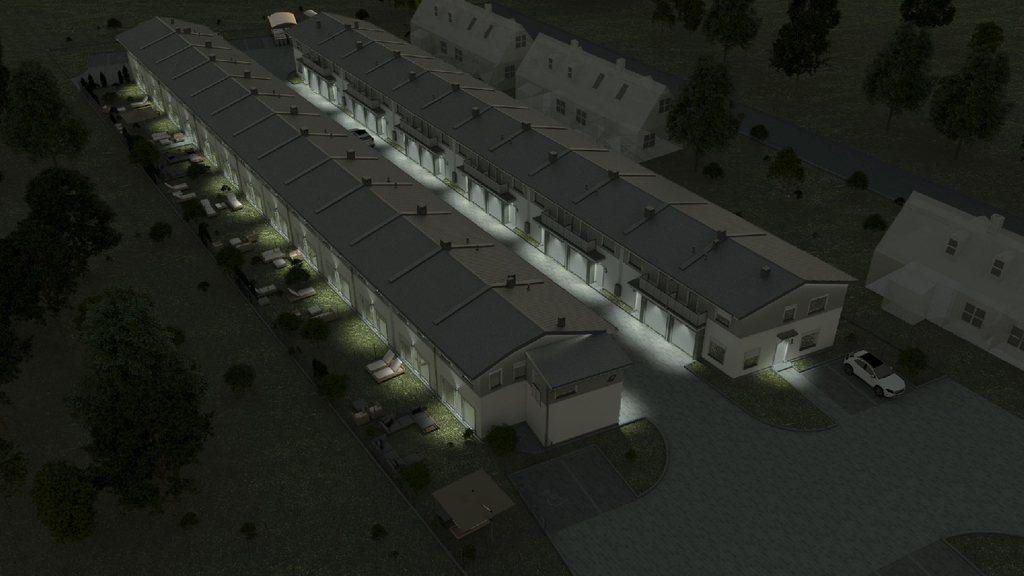 Dom znajduje się w zabudowie szeregowej wraz z pozostałymi 25 domami na ogrodzonym terenie zamkniętym.