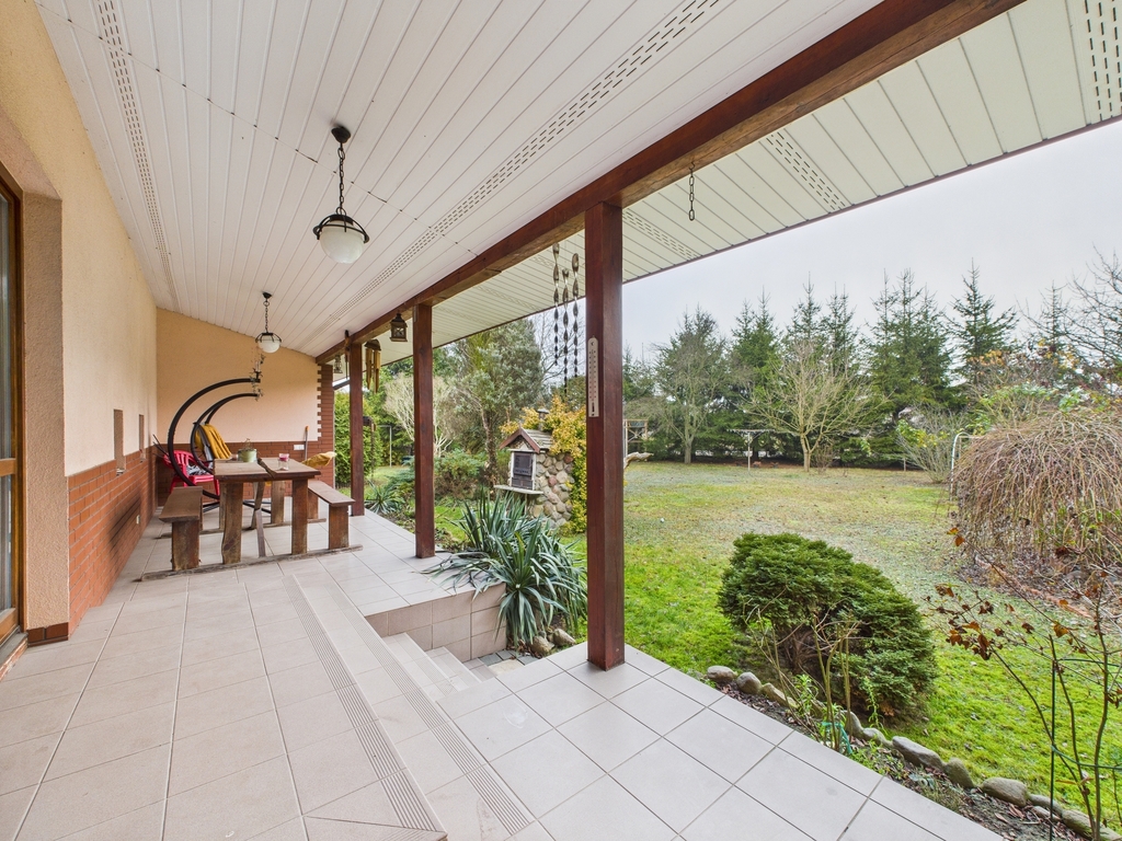 172,8 m² i 6 pokoi, działka 1376 m² ( w tym ogród ok. 1200 m²), taras 23 m²,