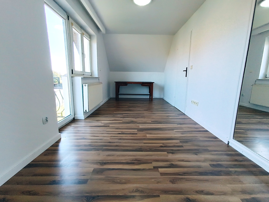 Z sypialni na piętrze jest wyjście na duży balkon.