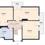 - piętro: trzy sypialnie (każda posiada własny balkon), łazienka.