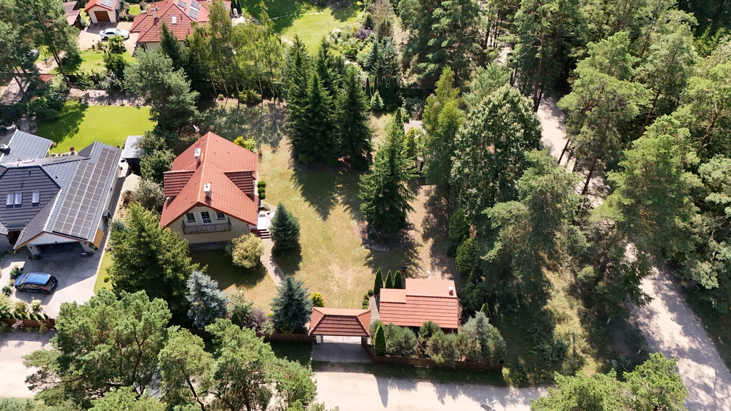 Powierzchnia 1949m2 (179/11, 179/13). Ogrodzenie drewniane z wiatą, brama wjazdowa na pilot. Działka zagospodarowana, regularnie pielęgnowana z sadem z drzewkami owocowymi (jabłoń, czereśnia, wiśnia, śliwka, gruszka, czarna i czerwona porzeczka, agrest) oraz roślinami ozdobnymi. Oświetlenie zewnętrzne lampami ogrodowymi.