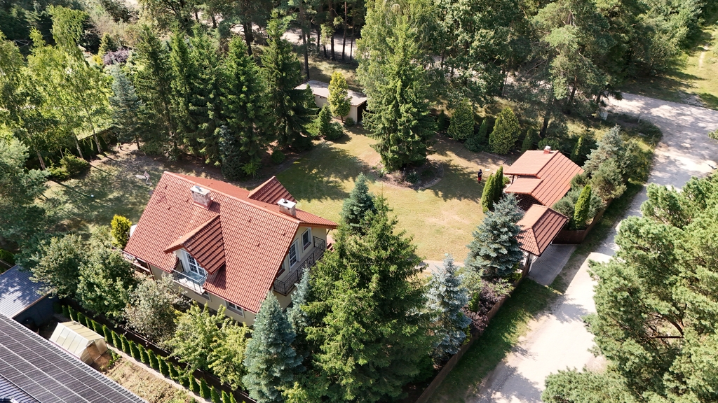 Posiadłość wybudowana w 2010roku z pustaka ceramicznego (Porotherm), ocieplona styropianem, stropy monolityczne. Dach wielospadowy z pełnym deskowaniem, kryty dachówką betonową. Okna PCV. Ogrzewanie z wykorzystaniem pieca opalanego paliwem stałym (ekogroszek, pellet, drewno) z systemem rozprowadzenia ogrzewania podłogowego połączonego z tradycyjnym. Przyłącze wodne z gminnej sieci oraz przydomowa oczyszczalnia ścieków. Podłogi wyłożone drewnianymi panelami oraz płytkami ceramicznymi.