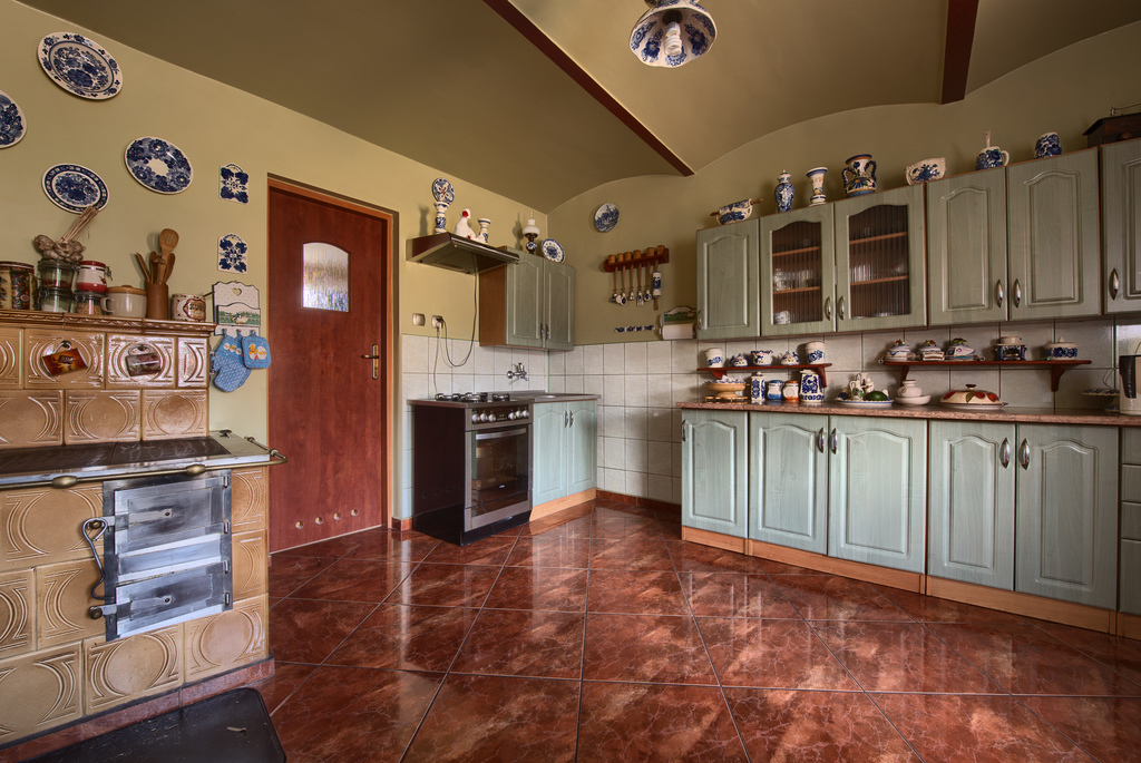 - 2 kuchnie z czego jedna z pięknym i używalnym piecem kaflowym,