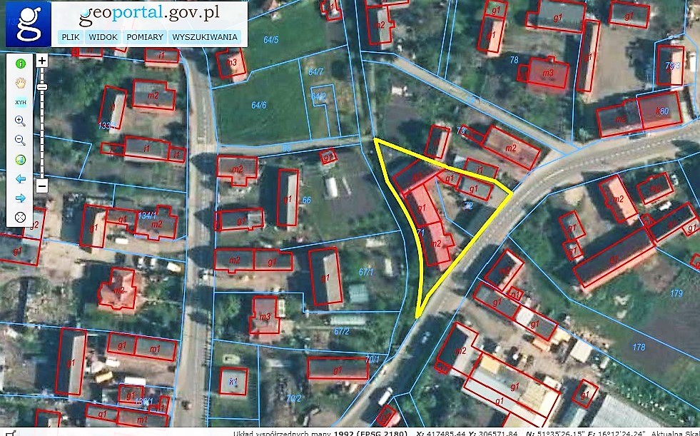 Na działce nr 71 o powierzchni 11 arów znajduje się opisywany powyżej budynek mieszkalny oraz dwa pomieszczenia gospodarcze o powierzchni 125 m.kw. oraz 121 m.kw., w ewidencji gruntów i budynków sklasyfikowana jest jako grunty rolne zabudowane natomiast w miejscowym planie zagospodarowania przestrzennego przeznaczona jest pod tereny zabudowy mieszkaniowej wielorodzinnej i jednorodzinnej oraz usług.