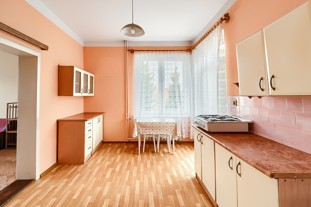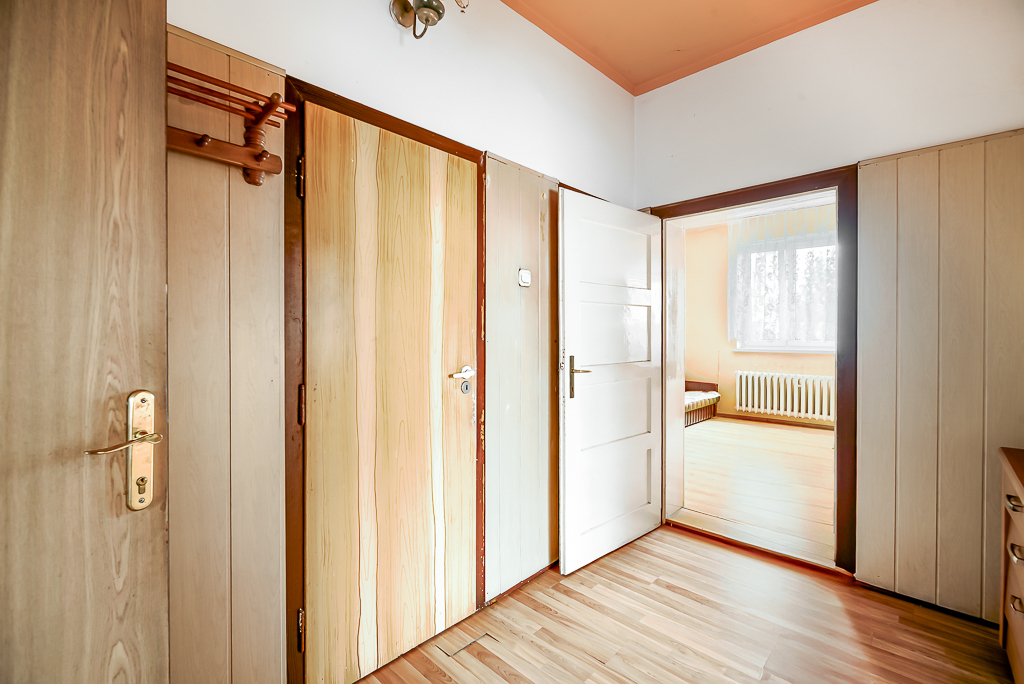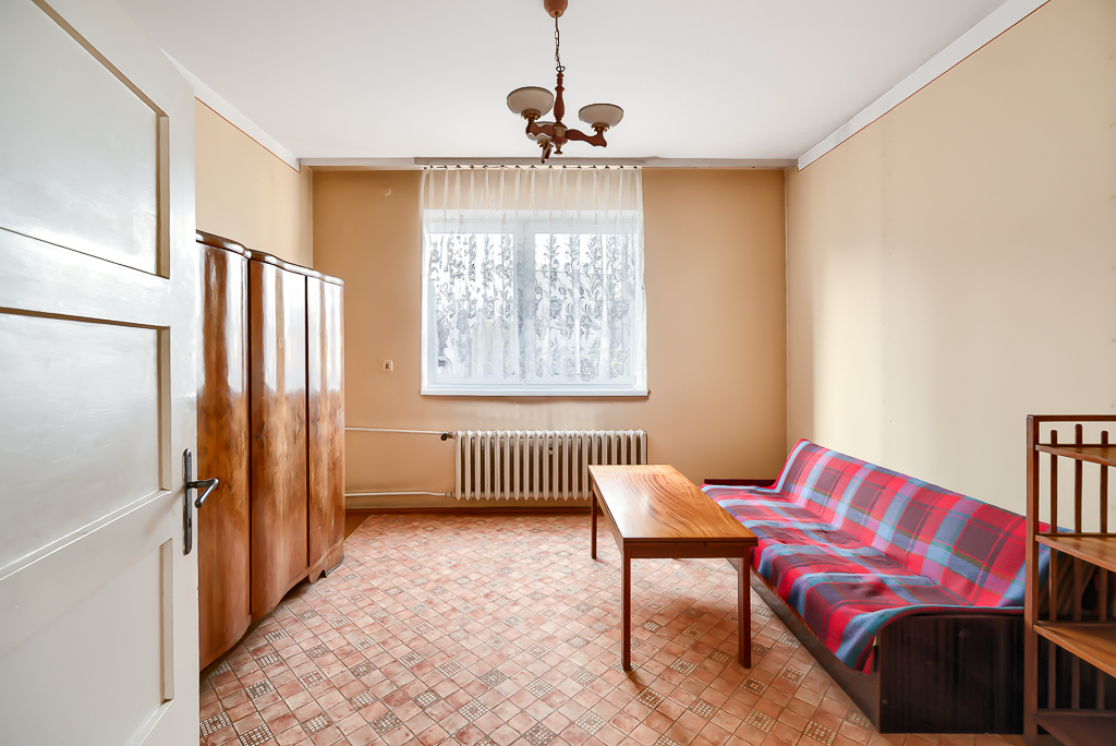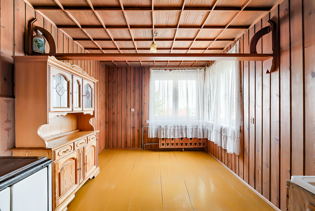 Wnętrze nieruchomości wymaga remontu, ale ogromne możliwości aranżacyjne dają okazję dostosowania domu do własnych potrzeb.