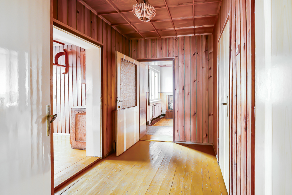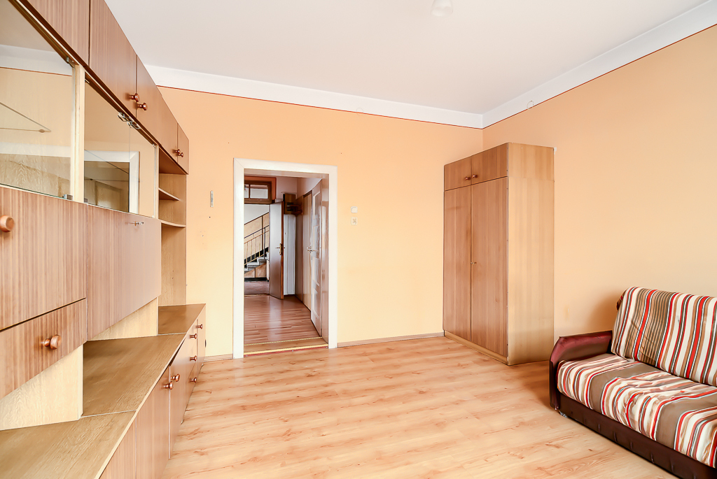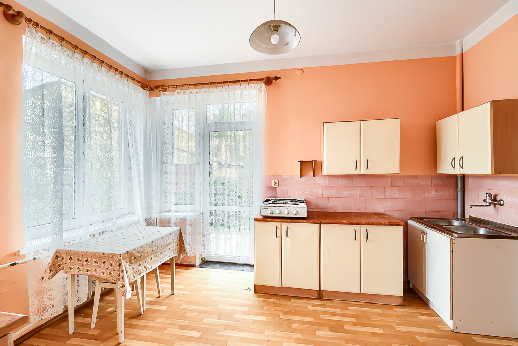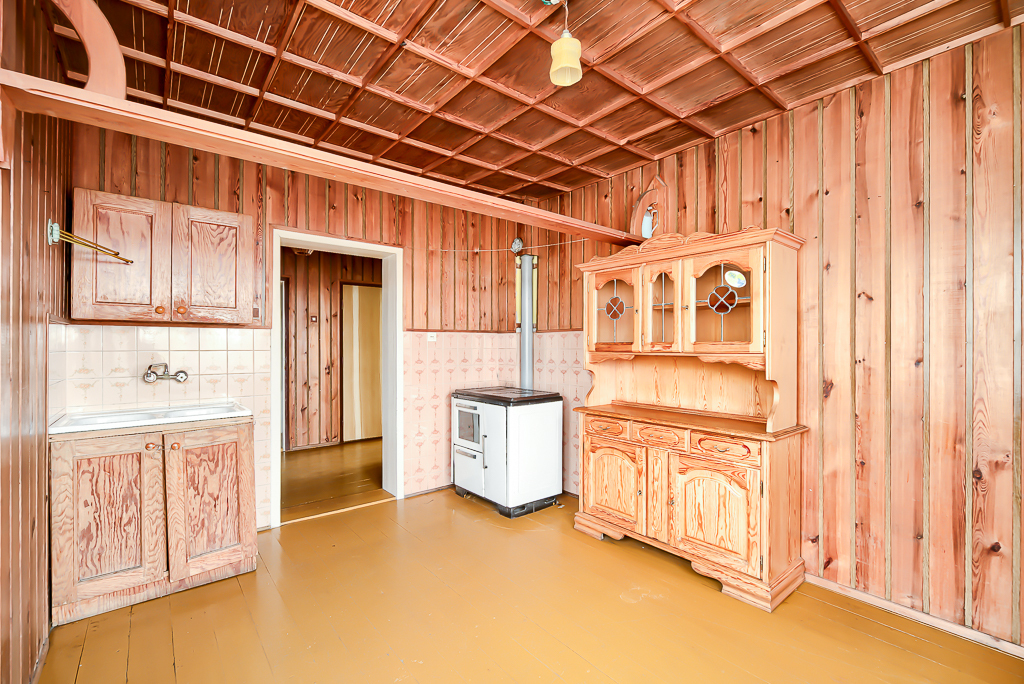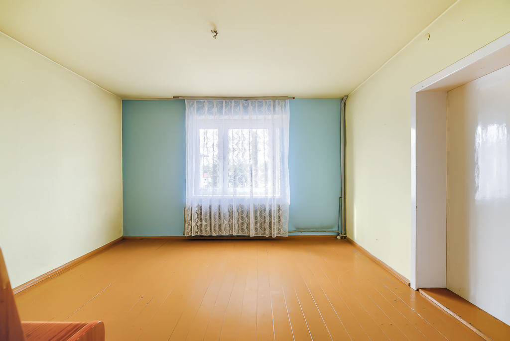 Wnętrze nieruchomości wymaga remontu, ale ogromne możliwości aranżacyjne dają okazję dostosowania domu do własnych potrzeb.